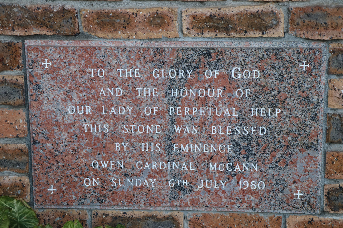 The late Fr Banahan had a great devotion to Our Lady of Perpetual Help and so was instrumental in the selection of the name for the church and of the Celtic cross at the top of the church tower. The church was opened and blessed on 14 December, 1980 by the late Archbishop Stephen Naidoo. Other features of the church were the crucifix above the altar, designed by a Paarl artist, and the Stations of the Cross designed and painted by a Parishioner Mrs E Hallam.